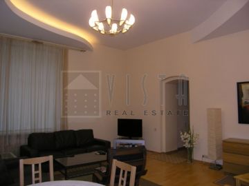 A delightful 2-bedroom apartment in the very center of Moscow. The property is located in a pre-revolutionary building which is situated not far from the famous Tverskaya Street. Wonderful layout. Available fully furnished. All modern conveniences, including air conditioner, heated floor, satellite TV, consierge. The newest home appliances. Both bathrooms are equipped with up-to-date sanitary equipment.
