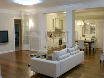 A stylish designer renovated luxury apartment located in the Smolenskaya area. Total area is 150 m. The property benefits from its prestigious location, functional layout, fully equipped kitchen, exclusive bathroom equipment fitted light bedrooms. Underground parking. 24/7 professional security.
