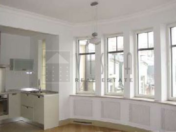 A newly renovated spacious apartment located in an elite residential brand new development with 24-hour professional security and underground parking in prestigious Patriarchie Prudy Ponds area. Large fully fitted kitchen, 2 fully equipped bathrooms. High quality western renovation. Parquet floor. Air conditioning.