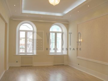 A functionally planned 3-bedroom apartment located on famous Old Arbat Street. Quality renovation, air conditioning, heated floor, laundry. Available furnished or unfurnished.