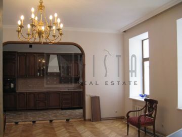 Outstanding spacious apartment located in the very prestigious Arbat area. This unique apartment benefits from exclusive design, elegant interiors, layout planning, a fully equipped kitchen, 2 bathrooms, parquet, conditioning, intercom, security. Total area 200 sq m, partly furnitured.