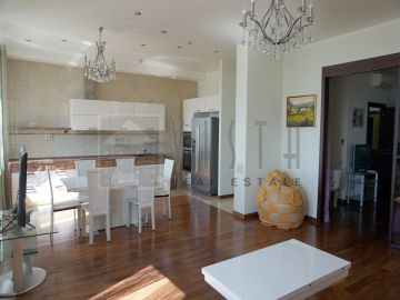 Квартира с панорамным видом находиться в одном из зеленых районов Москвы рядом с парком.В доме имеется паркинг.В квартире новый качественный ремонт с элементами дизайна.Гостиная лофт с кухней.Интересное решение с зонированием спальни стеклянными дверьми. В квартире 2-спальни,гардеробная комната,2-сан.узла,кондиционирование,подогрев пола.Мебель модерн.
